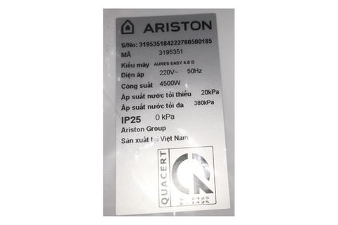 - Máy nước nóng trực tiếp Ariston này hoạt động với công suất mạnh mẽ lên đến 4500W, nhiệt độ làm nóng tối đa của máy là 45°C.