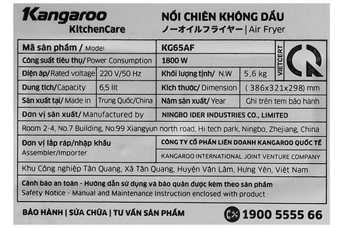 Nồi chiên không dầu Kangaroo KG65AF 6.5 lít trang bị công nghệ Rapid Air, công suất 1800W, dung tích sử dụng 5.5 lít, 7 chương trình nấu ăn cài đặt sẵn, cùng nhiều tiện ích như: có lưỡi đảo thức ăn, quan sát được thực phẩm lúc đang chế biến,... hỗ trợ bạn chế biến nhiều món chiên nướng hạn chế dầu mỡ cho gia đình.