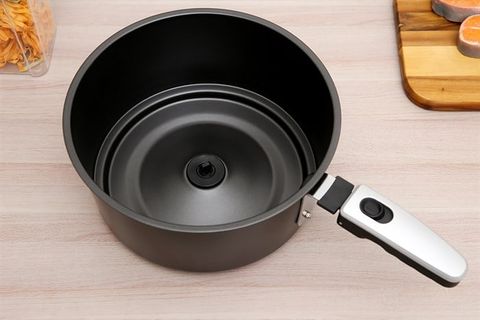 - Lòng nồi bằng kim loại phủ lớp chống dính, bền bỉ, nấu nướng an toàn, dễ vệ sinh sau khi sử dụng.